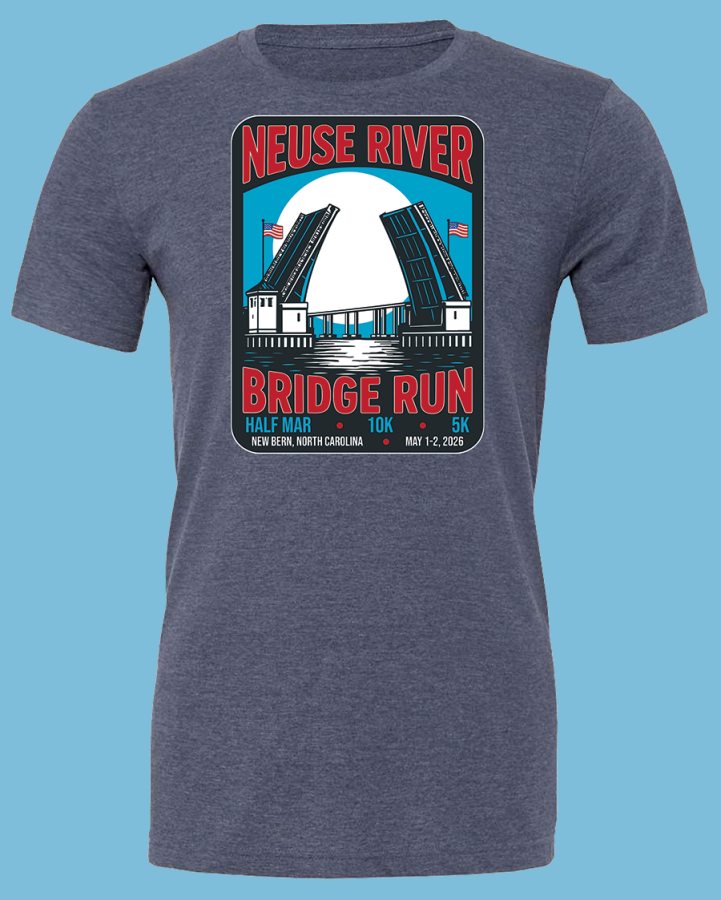 This year the Neuse River Bridge Run T-shirt is a high quality cotton blend t-shirt with a very soft finish . . . a runner's favorite shirt.